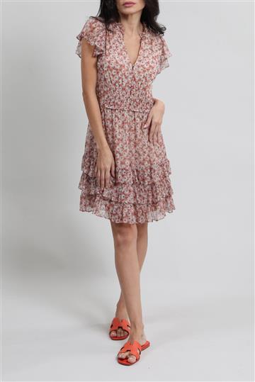 - Vestido em tecido leve e fluido com fios de lurex aplicados à trama