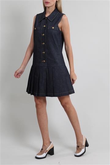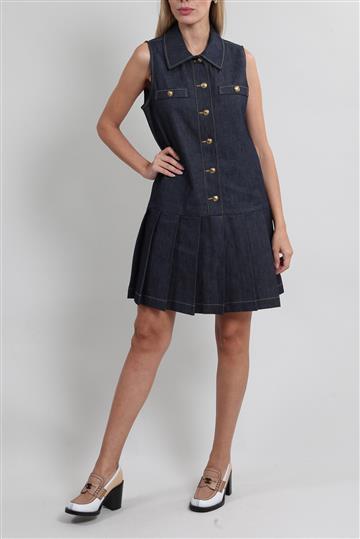 - Fechamento frontal por abotoamento com botões metálicos decorados