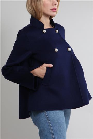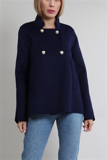 Casaqueto Carolina Herrera Trapézio Lã e Botões de Pérola Azul