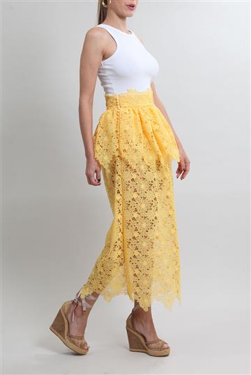 Saia Paula Raia Midi Peplum Rendada Amarela